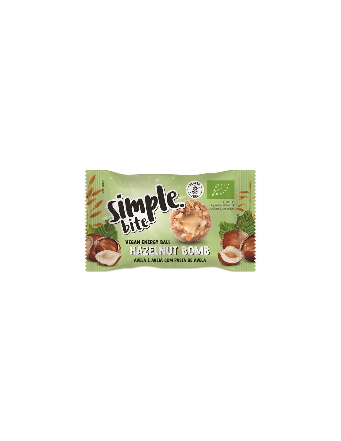 Tâmaras*, pasta de avelãs* (19%), aveia* (isenta de glúten) (15%), avelãs* (15%), xarope de agave* e sal.