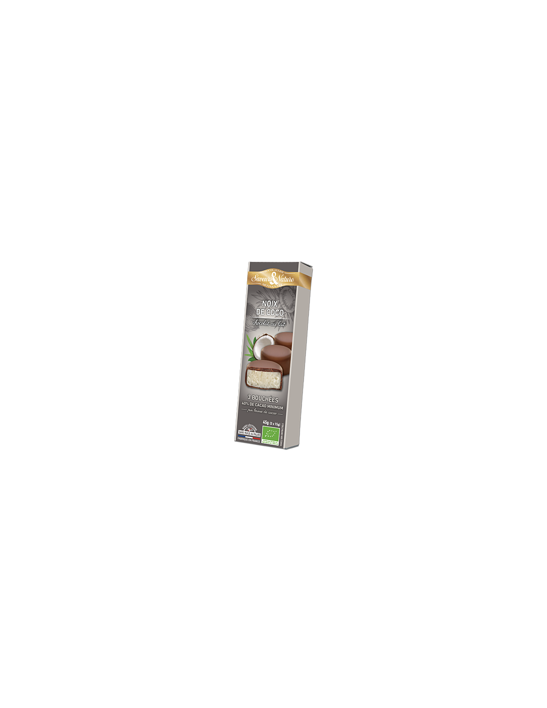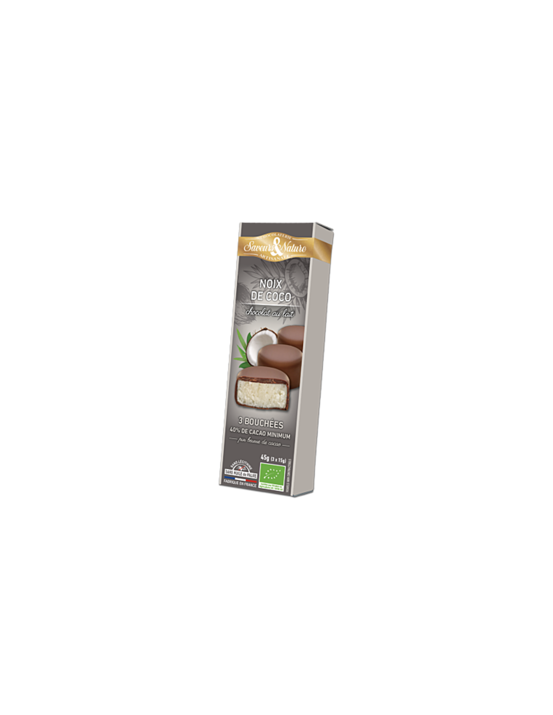 Chocolate ao leite * (pasta de cacau * e manteiga de cacau * (40,5%), açúcar de cana * (40,5%), leite em pó integral *, 19%); coco ralado *(24%); xarope de trigo *; chocolate branco *.