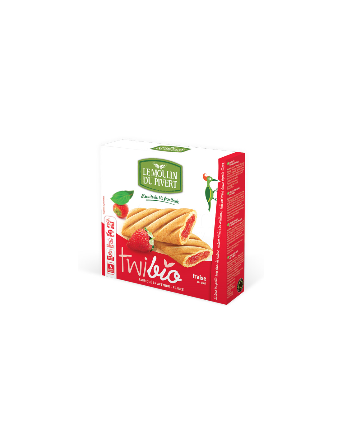 Farinha de trigo*, purê de maçã*, açúcar de cana*, óleo de girassol*, xarope de trigo, morango*(9%), sabor natural de morango*, rapadura*, fermento em pó: bicarbonato de sódio, canela*, sumo de limão*, pó de vagem de baunilha*.